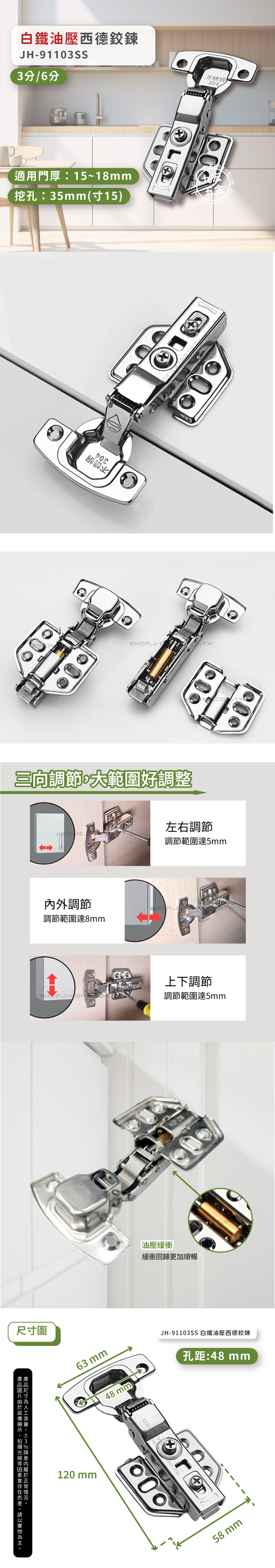 JH-91103SS 寸15 白鐵油壓西德鉸鍊