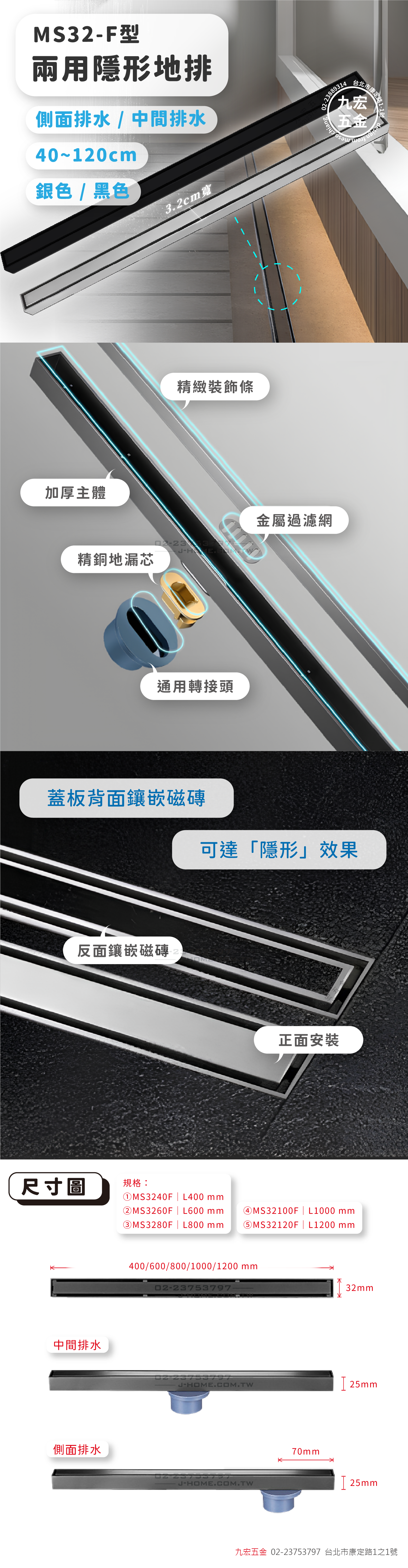 提供側面排水 / 中間排水兩種排水方向,滿足不同浴室格局。