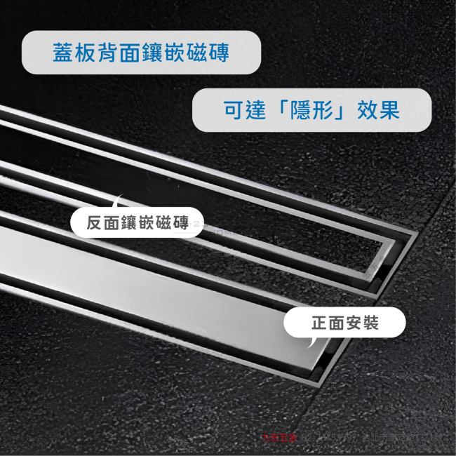 可正面安裝亦可反面鑲嵌磁磚,打造幾近隱形的排水效果。